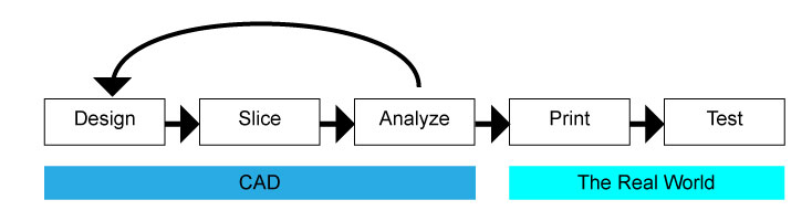 If the designer is relying on the CAD software to provide some of these calculations – either through the basic functionality of the CAD suite itself or exporting models to more advanced analysis tools, those numbers will be based on a solid material, rather than a lattice material within a shell casing. In short, the numbers will not correspond to the printed part. Perhaps this might not be much of an issue for lightweight plastic not being called into service on something high performance, but for metals, it can be an issue. What’s more, this separation of infill and design disallows designers to truly maximize material usage because the testing is well before and completely disconnected from the slicing stage. The designer will have to over-engineer a part just to make sure it operates properly, or rely on testing of the printed part afterwards to dial in the infill and sometimes even the designed shape’s characteristics to guarantee proper functionality.